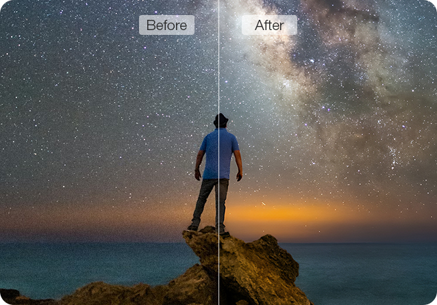 Improve Low-light and High-ISO Noisy FootageDigital noise, often seen as "grain", typically ruins videos captured in low-light environments or with high ISO settings. To fix grainy videos, our AI Denoising algorithm automatically distinguishes between actual detail and random noise. The best video denoiser allows for the removal of unwanted grain while preserving natural clarity of the whole video, making your low-light footage look clean.