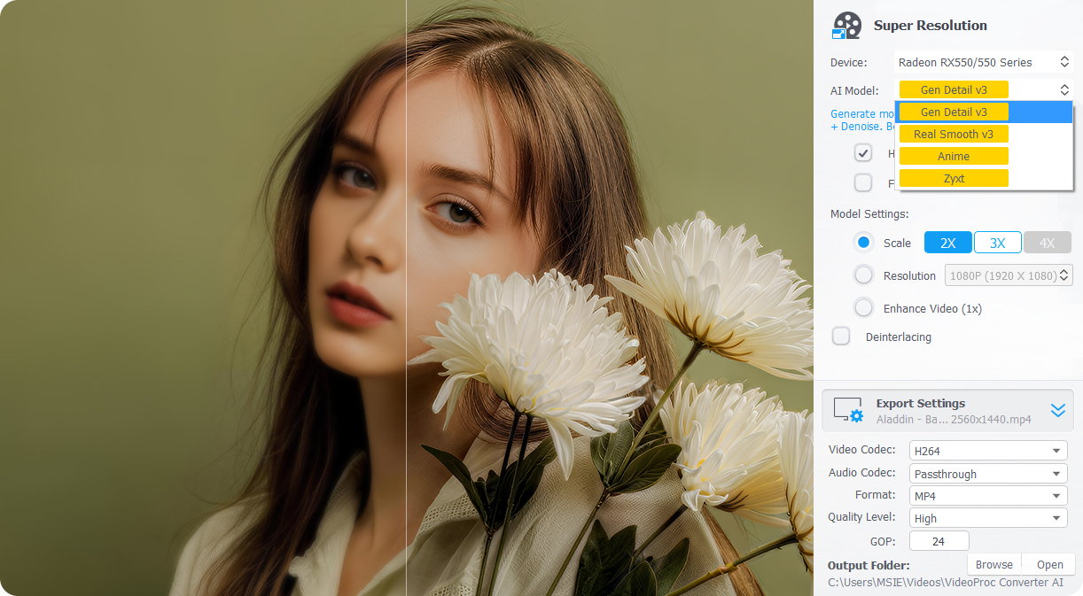 VideoProc Converter AI offers four Super Resolution AI models, each optimized for different content types. For most users, we recommend starting with the two latest models: