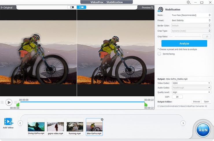 Clips shot on mobile phones, handheld cameras, and drones often suffer from shake or motion blur, distracting viewers and breaking the flow. Instead of fixing this in the NLE, many editors stabilize footage first. VideoProc makes it easy with an AI Stabilization tool that remove unwanted camera shake.