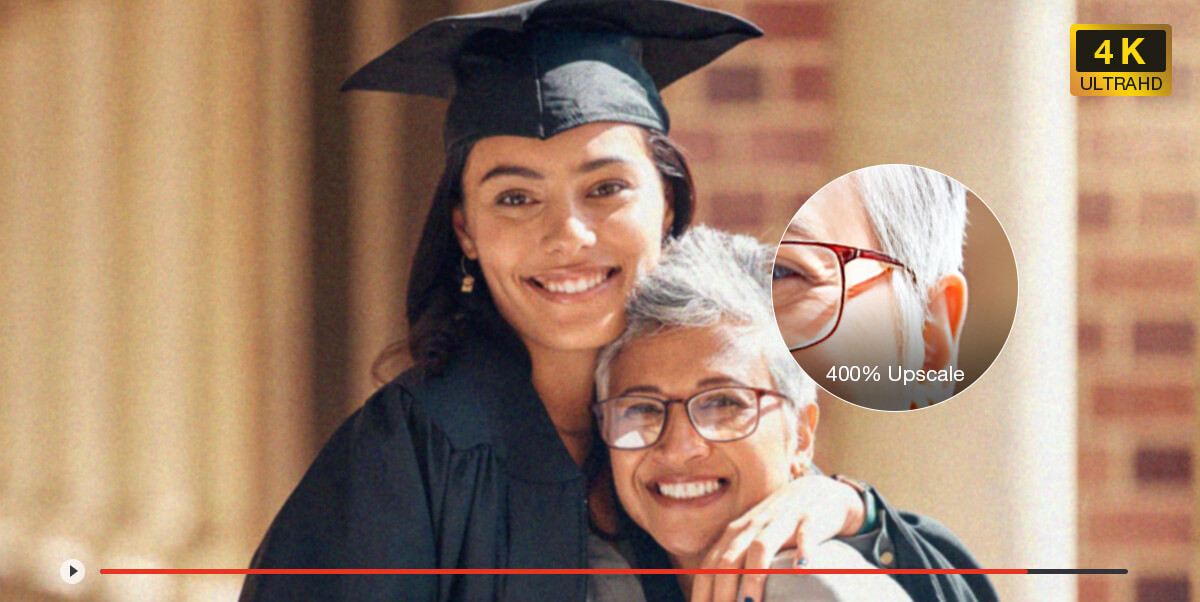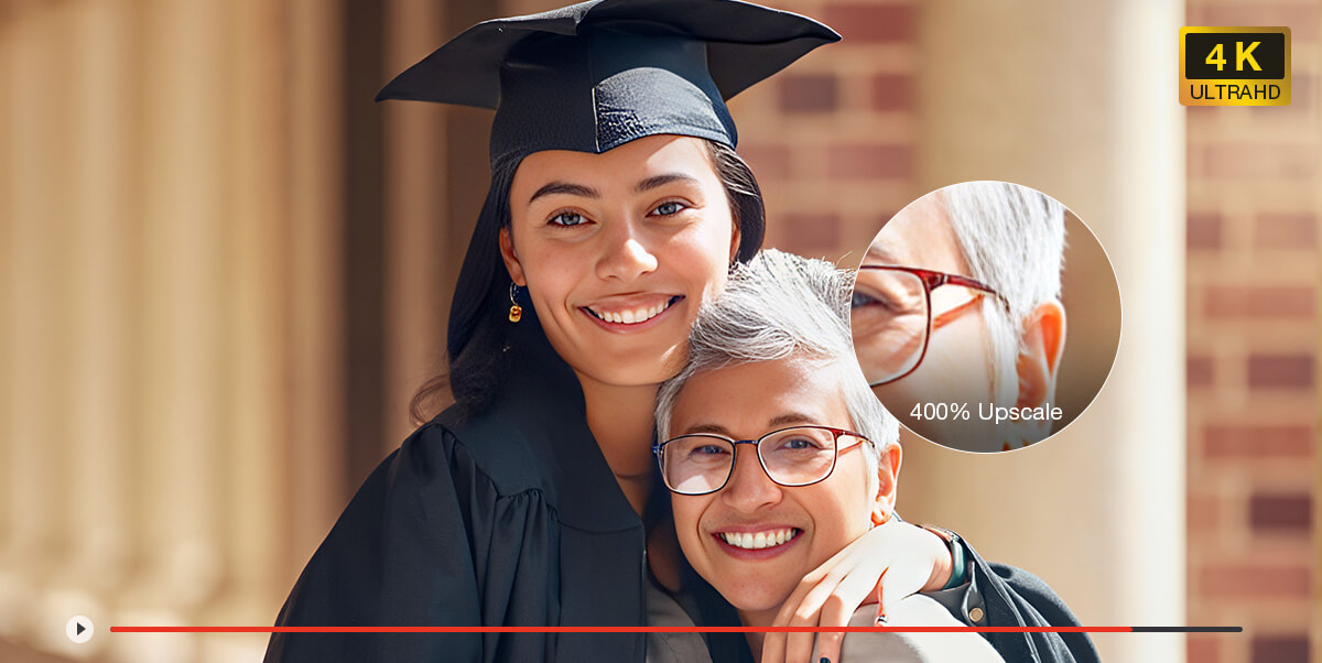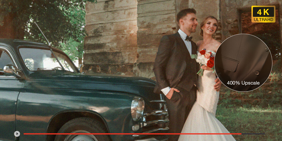 One-click to upscale old photos/images to even 4K/8K/10K resolution, revive classic MVs, vintage DVD/VHS/DV recordings, antiquated camera footage, and archival documentaries to up to 4K with a contemporary aesthetic.