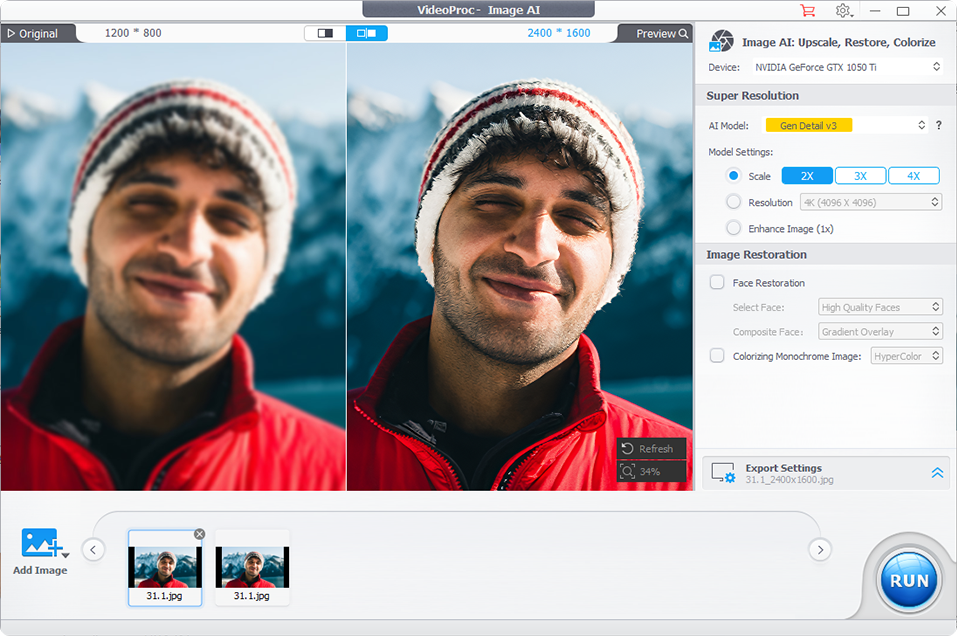 VideoProc Converter AI is integrated with the 4 dedicated AI models in Super Resolution during image enhancement: