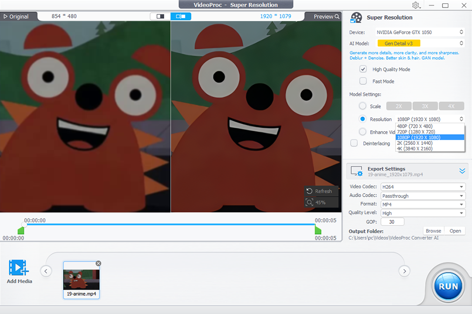 VideoProc Converter AI offers 4 dedicated AI models to help you enhance and upscale different types of videos.:
