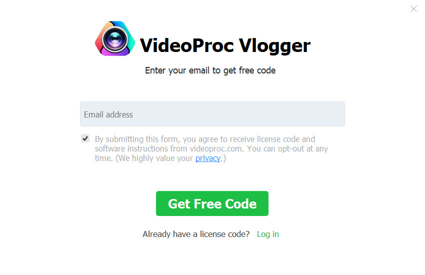 If you have already downloaded and installed VideoProc Vlogger, follow the guide below to log in with free license code. Please note you can use the same license code on two Windows or macOS computers at most.
