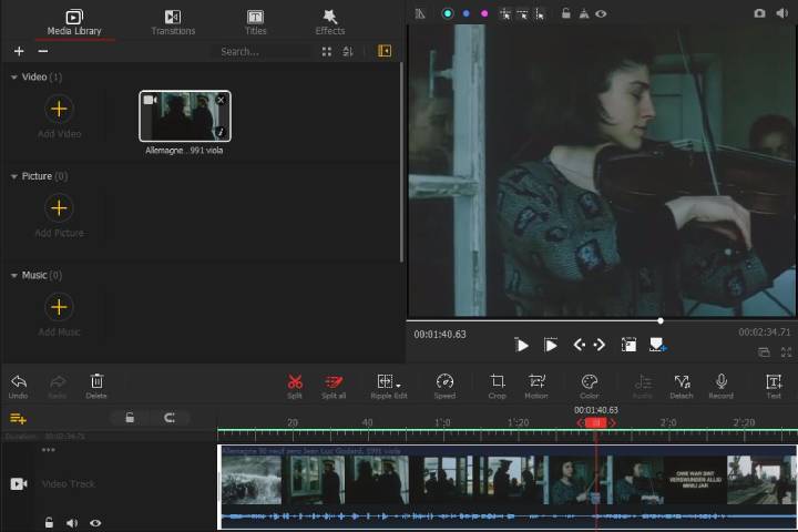Launch VideoProc Vlogger and create a new project. Then click the + icon on the main interface to add the video to the Media Library. After that, drag the video to the Video Track in the timeline. The video used here is a film with a 4:3 aspect ratio shot in the early years.