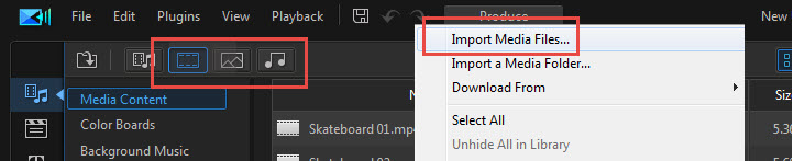 Step 2. Import video clips and music you like to edit into the Media content bin.
