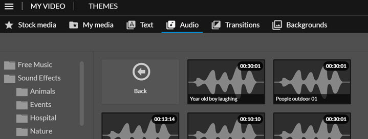 Step 5. You can also click on the Audio tab to use stock sound effects provided by WeVideo.