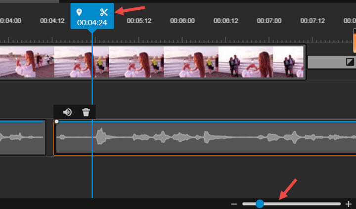 Drag the slider at the bottom right to enlarge the timeline so that you can cut the audio precisely.
