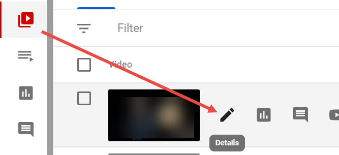 Step 2. In the Content page (the tab under the Dashboard icon), click the Details (pencil-shaped icon).