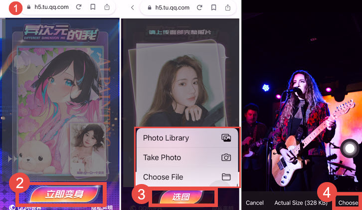 Previously, when you tap the button to start creating, it works directly inside the browser app of your mobile phone. Now, it will take you to the QQ app to start using this Anime generator (see screenshot below). QQ is an instant message app developed by Tencent, and it works like Facebook Messenger or Telegram Messenger.