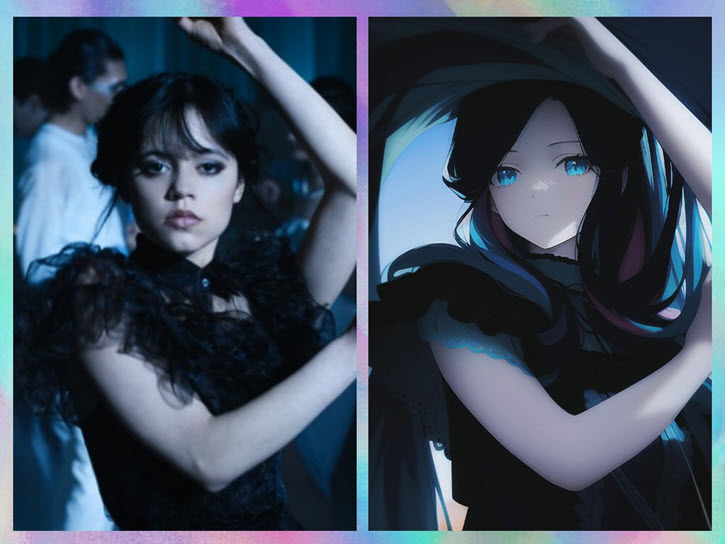 Here is the viral dance scene of Wednesday Addams, do you like its AI anime version?