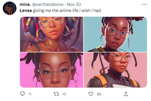 And other times, Lensa AI has its own whimsical decisions. Check out what happens to @SimuLiu on the screenshot below.