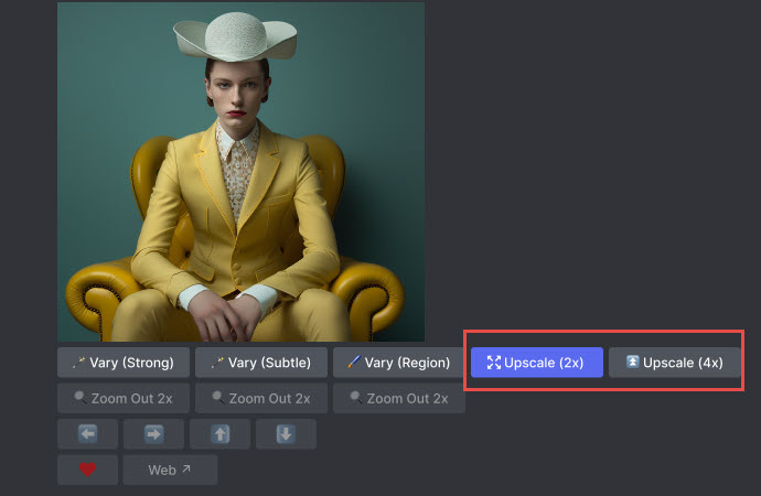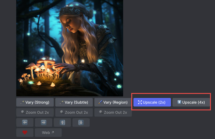 Step 5. Click the Upscale 2X or Upscale 4X button to increase the resolution of Midjourney image.