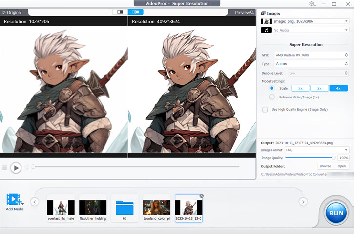 This image upscaler supports both PNG and JPEG format. For the best quality, keep the Image Quality at 100% upon exporting. Once you are satisfied with the settings, hit Run to finish upscaling the Midjourney image.