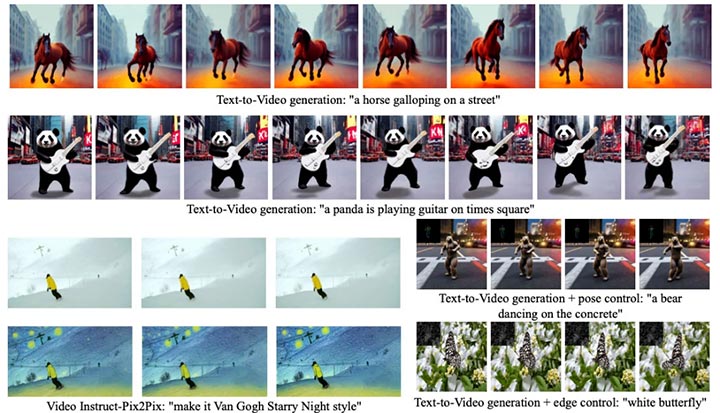 Based on the existing text-to-image synthesis methods (e.g., Stable Diffusion), Picsart's AI research team (PAIR) has introduced a new approach to generating new video content from only texts. In the near past, AI-generated subjects and the background looked slightly different from frame to frame. But in Picsart's new methods, things look consistent and realistic. Moreover, you can use the new generative AI to turn the video to a new appearance by a prompt "make it Monet Impression, Sunrise style".