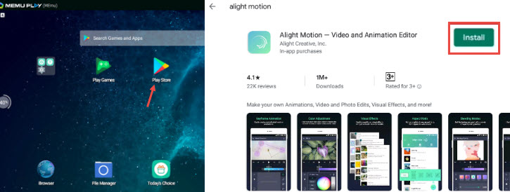 Step 5. Click INSTALL to download Alight Motion on PC inside the emulator.