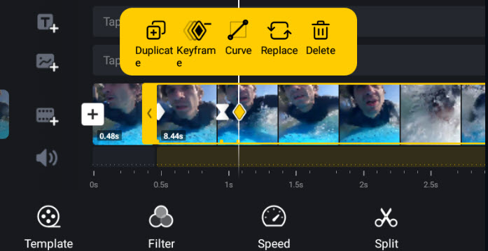 - Speed adjustment: 0.5 to 2x, doesn't support speed curve adjustment.