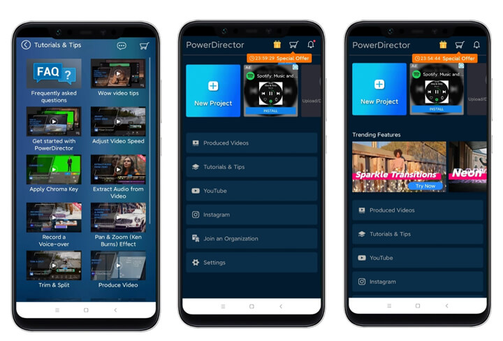 PowerDirector is one of the best video editing apps for YouTube creators. From basic tasks like trimming and splitting clips to more advanced techniques like chroma keying and motion tracking, the YouTube video editing app has you covered. It also supports a wide range of video formats and offers a vast collection of built-in effects, filters, and overlays that users can leverage to add more creative touches to their YouTube projects. Additionally, the app provides access to an extensive library of royalty-free music and sound effects, enabling you to create captivating multimedia experiences. While PowerDirector offers a comprehensive set of features, it's important to note that some advanced tools and functionalities require an in-app purchase or subscription.