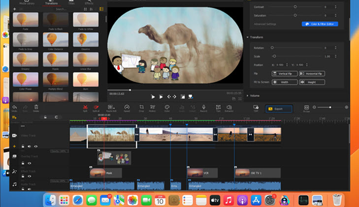 iMovie is a native video editing app that comes out of the box on iMac, MacBook and other Mac computers. The similarities it shares with CapCut is that they are both free and without watermark. You can add music, overlays, and filters to the video easily. iMovie has a storyboard feature that CapCut lacks, and the map animation in iMovie is stunning also.