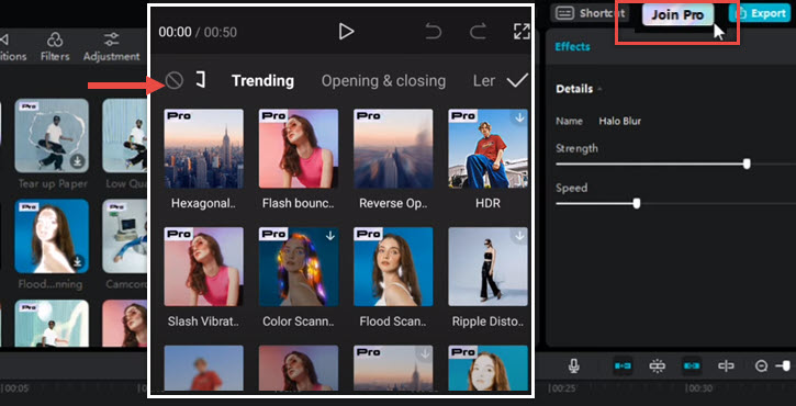 If you don't see the Join Pro button showing up in your CapCut app, then it means your region is currently not available for the subscription.