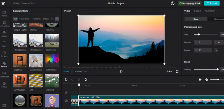 According to its homepage introduction, CapCut Web is online-based and totally free to use. Creators can resort to high-quality resources without worrying about copyright issues.