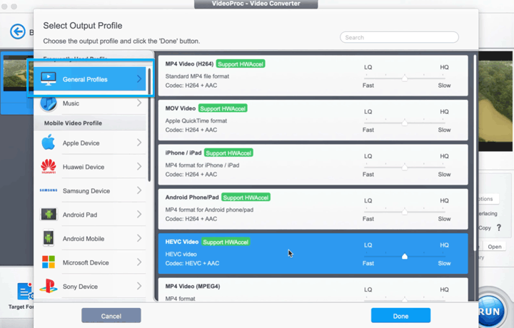 VideoProc Converter AI also offers a few other easy manners to compress a MOV file. After adding your MOV file to the program, go to the Target Format section, and then select a more efficient codec like MOV H.264 and MOV HEVC. Hit codec Option and then you can alter one or more compression parameters to further reduce the MOV file size.