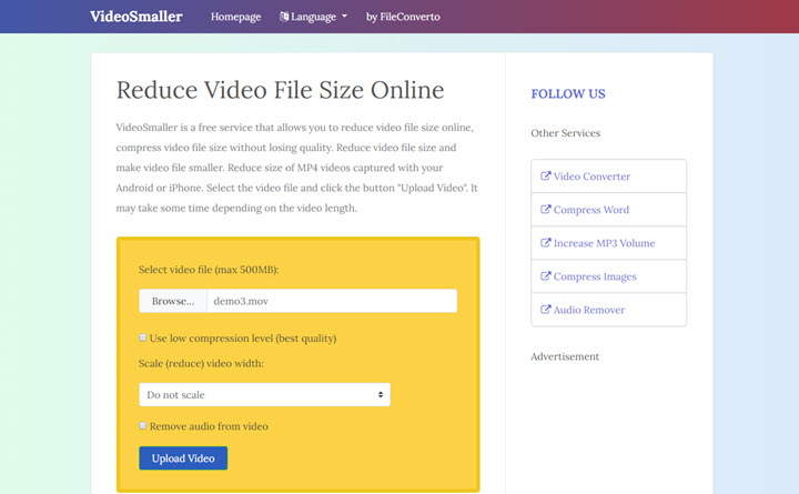 Method 4. Compress Video for Facebook Online via VideoSmaller