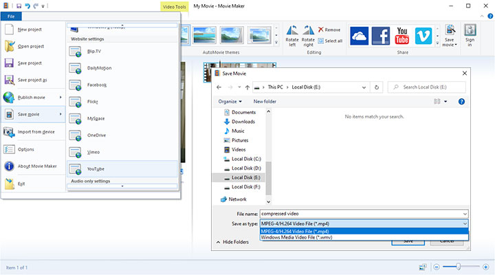 Windows Movie Maker is more of a video editing software rather than a video compressor. But in this case, since Windows Movie Maker provides an export setting for YouTube, you can also use Windows Movie Maker to compress your video for YouTube. Simply put, the whole process is to import your video into the program, then export it in YouTube format, as long as your system is Windows 7 or later, and you still have the program on your computer. In the meantime, you can also make some edits.