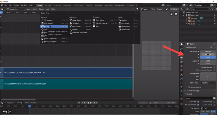 Step 1. Open Blender and change the editor type to Video Sequencer.