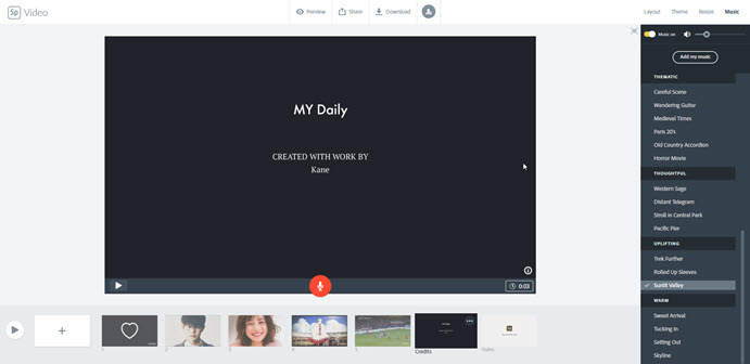 Released by Adobe System in 2016, Adobe Spark is a creative tool that can help you assemble clips, defining the styles by changing project themes, adding titles and background music and more. It's a browser-based and cross-platform application that works on Windows, macOS, iOS, Android. More so, it has a strong link to a variety of the social networks, which help you create content with a host of templates provided.