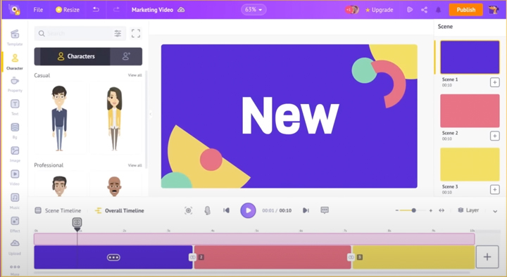 Largely characterized by its text-to-speech functionality that enables users to convert written scripts into natural-sounding voiceovers. The software supports multiple languages and dialects, ensuring that explainer videos can be made accessible to a global audience. Besides, with a rich library of pre-made templates, characters, and objects at your disposal, users can customize your explainer video, and tweak every aspect of their video, from the color and fonts to animations and transitions, to fit the specific needs of any project.