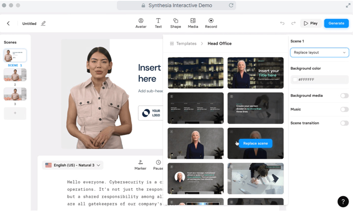 Synthesia is another option for those in search of a high-quality explainer video maker. It uses advanced AI technology to create videos with realistic-looking human presenters, making it an ideal choice for businesses and organizations looking to convey information in an engaging and professional manner. The platform is incredibly intuitive, with a drag-and-drop interface that allows you to create videos quickly and easily. You can choose from a range of templates and customize the video to suit your needs, adding text, images, and other elements to create a truly unique and engaging video. In addition, the AI explainer video software supports multiple languages, making it easy to create videos for a global audience.