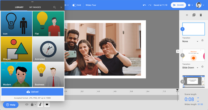 Another explainer video software you can leverage is VideoScribe. The software allows users to easily create and erase elements on the virtual whiteboard, and customize the actions to fit the narrative flow, which not only keeps viewers engaged but also helps convey complex ideas more clearly. Moreover, the vast library of pre-built images and icons is optimized for this whiteboard effect. Each element is crafted to make the drawing and erasing process appear smooth and lifelike, even when users import their own images.