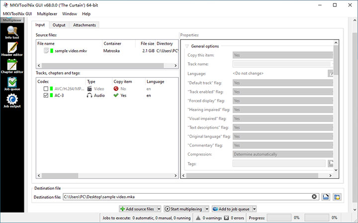 - Drag and drop the MKV file in the Source files section.