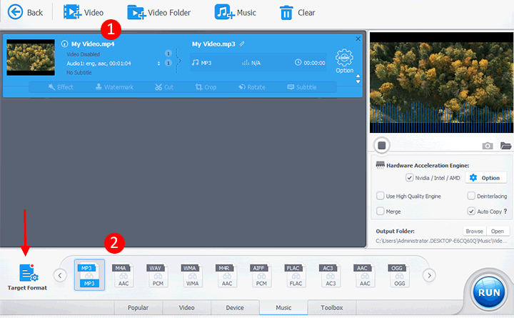 - On the target format page, find the music at the bottom, click on it, and select the audio format you like.