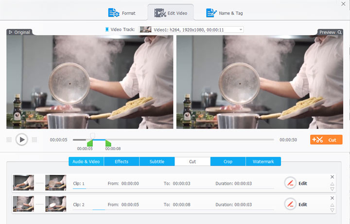 - Crop, and drag the boxing line on the preview bar to chop off the unnecessary frames, for instance, the redundant people and black edges.