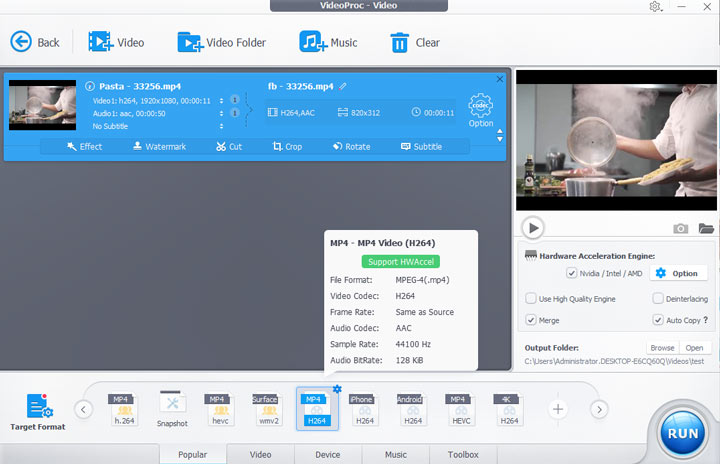 If the video is still displayed as a static image, the problem might be from the formats. You need to use VideoProc Converter AI Facebook cover video maker to convert the video to H.264 MP4 formats.