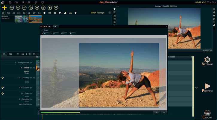 PowerDirector is a prosumer video editing tool. Don't worry, Beginner would find it straightforward to use too. It integrates the cropping tool together with Pan and Zoom, and that makes sense. For a simple cropping task, you can quickly adjust the cropping box to indicate the area to keep or crop. To spice up the video, you can also zoom in and create panning effects. For instance, you can crop a 4:3 video to widescreen, and then add keyframes and grab the crosshair to move the frame. It's nice to have pointers and frames to simply drag, or make it smaller to crop.