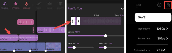 3. Tap the Music icon to add two songs or multiple sound effects.