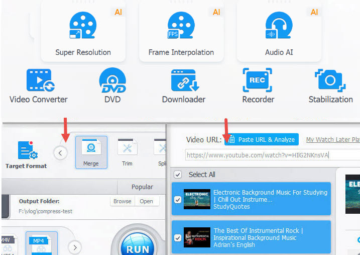 - VideoProc Converter AI – Download online music or videos and merge two music videos into one.