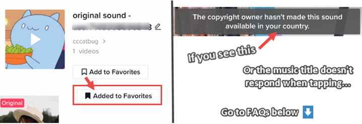 When you are trying to tap the song's name and add it to your favorite, you might see a warning reading "the copyright owner hasn't made this sound available in your country". In this case, you can search for that song, and check its license type. If it falls in the creative commons, then you can download it from online music hosting sites, and add it as your own song using the methods in this article.