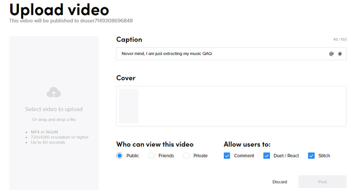 If the songs or sound effects you plan to add are stored on your computer, you can visit TikTok's official webpage to upload the video, thus avoiding all the hassles of transferring songs from a computer to your mobile phone.