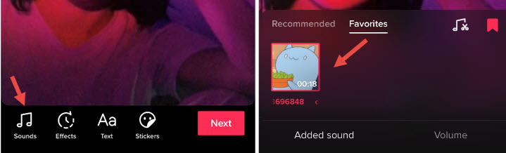 - Next time, when you are posting a new video, tap the music icon, and hit the Favorite tab to find the song you have added.