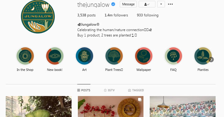 Here is a ready example from one of my favorite interior design accounts @thejungalow on Instagram. You can see that the stories are added to well-classified Highlights, with a set of consistent and coherent icons.