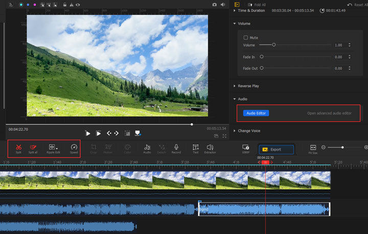 Additionally, you can utilize the Audio Editor for access to a range of advanced audio editing tools such as the Audio Analyzer and Audio Equalizer. With these tools, you can fine-tune your edits and make precise adjustments. Furthermore, you can listen to the changes you've made in real-time, allowing you to hear the impact of your edits as you make them.