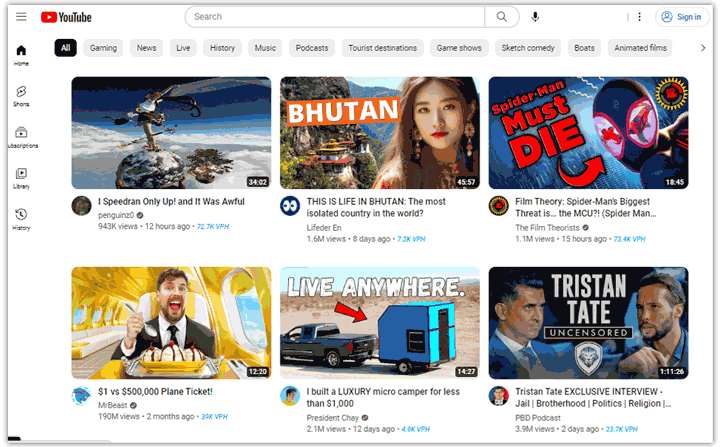 YouTube Studio video editor is not accessible through the YouTube mobile app. Therefore, to add music to a YouTube video, you need to open youtube.com on your computer's browser. Once you have opened youtube.com on your browser, click on the Sign In button located in the upper right corner and sign in to YouTube using your Gmail account.