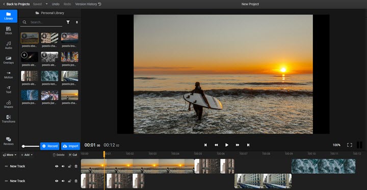 Step 1. Same as what we have shown you above for the initial steps, create a new project and import the videos and drag them to the video track.