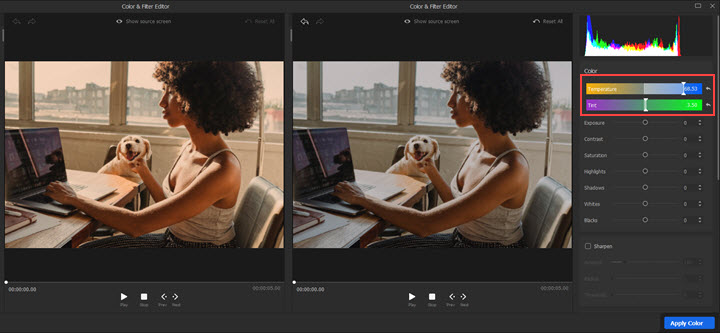 Click Apply Color to save the changes and get back to the main interface. You can continue editing or hit the Export button above the timeline to export the video to your computer.