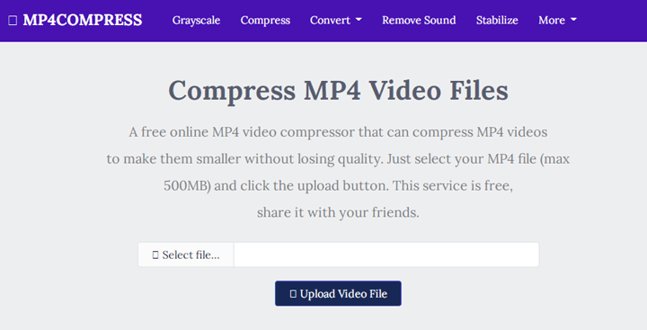 As the name suggests, MP4Compress offers online services for reducing the file size of MP4 videos. As a simple-to-use video compressor, it does not require registered accounts or video codec knowledge. It's a good option when you need to compress and share MP4 videos in an instant.