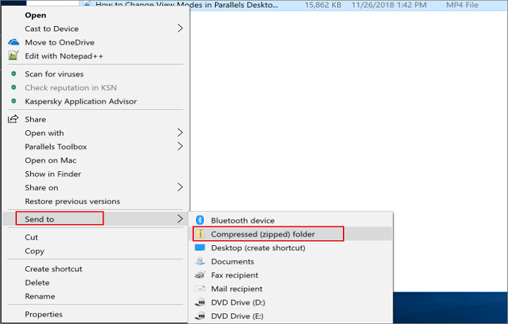 Creating a zip file may be the most common way to compress video file for email. This will reduce video size significantly without losing any video quality.