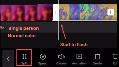 - Use CapCut to combine normal color and visual effects video together. When the background music goes to the "Ah, oh-uh-uh-oh" part, the Flash Warning moments begin.